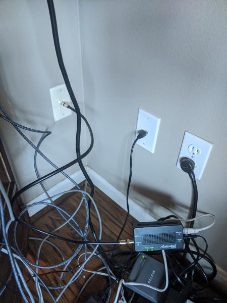 My brother Chris was staying in my office for about a month after my move to Seattle. He was also moving, but had a gap before his next lease started. One morning, he told me that League of Legends was lagging when he used the powerline connection instead of the WiFi.